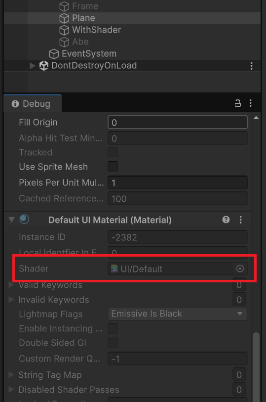 ImageコンポーネントのMaterialの欄がNoneの場合に、内部で選択されているシェーダーがこれです。