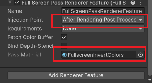 今回追加するのは前述のとおりFull Screen Pass Renderer Featureです。